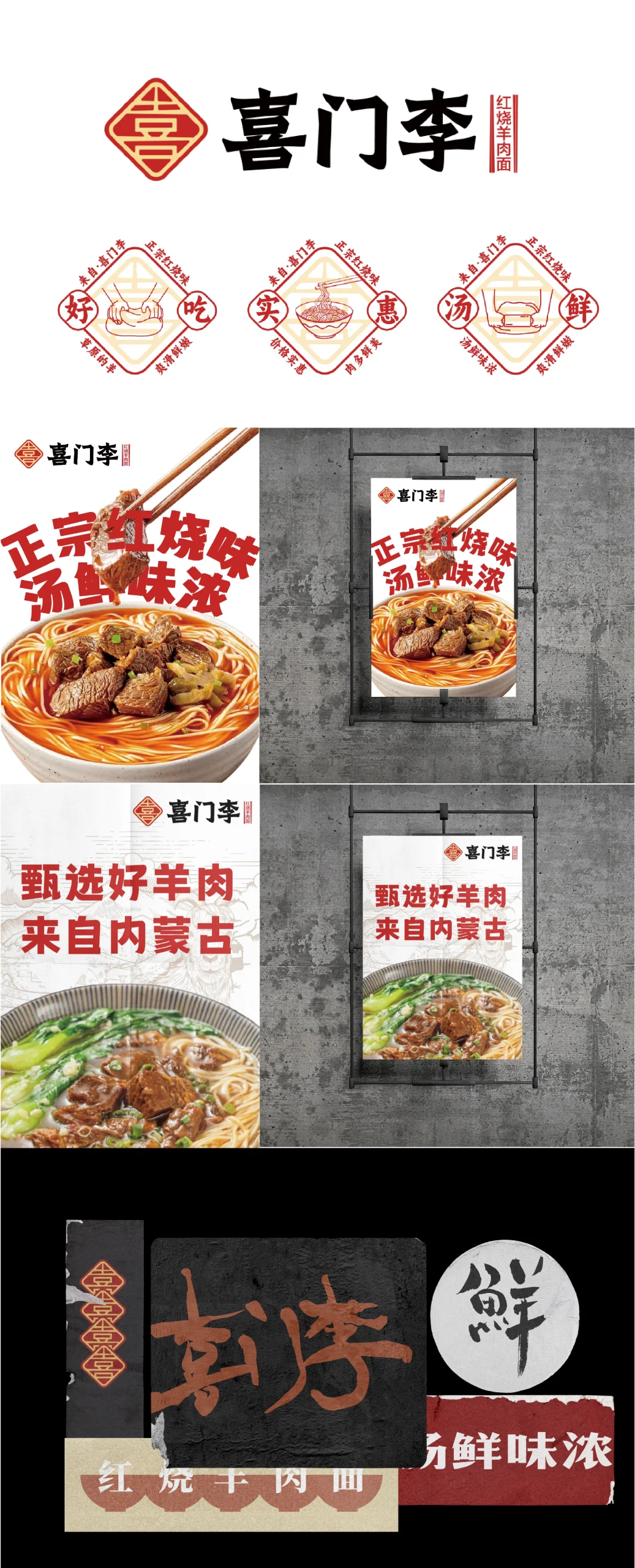 喜门李来自家庭的传承,一碗手艺一碗面。受邀帮他们老李一家从无品牌的小店变成本地品牌化的特色面馆。